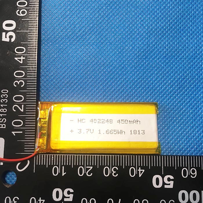 電池型號:KC402248-450 組合方式:1S1P(單體電池)