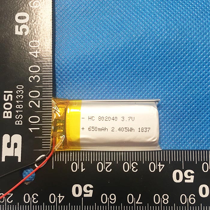 電池型號:KC802040-650 組合方式:1S1P(單體電池)